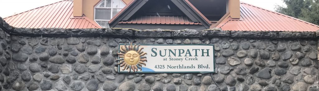 When you arrive by vehicle, you will see underground parking with a sign showing Sunpath…please pull into the underground parking, there will be visitor stalls outside the secured guest parking. Walk back up to the street and take a right (u-turn) into the complex. You will see the pool/hot tub building on your right. On the back side of this building is a map of all the units. Once you approach the pool area, there will be a fire hydrant on your left and path next to it. Go down the path to the end and take a right. Unit #4 will be a couple units down.