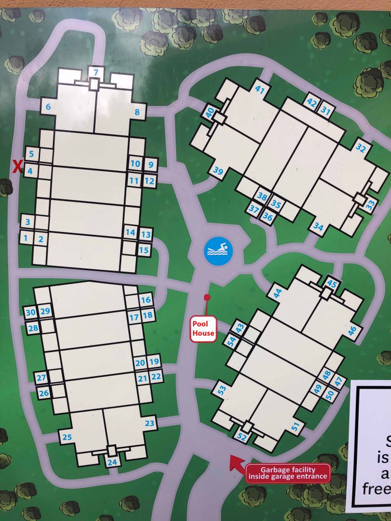 Once you enter the premises, you will need the security fob (with red key chain on a lanyard) which will be hanging in the entry mudroom area. This will grant you access to areas including parking gate and doors, pool/spa, garbage/recycle/organics room, bike storage. You can go back to your vehicle with the security fob and enter the secured parking area. Tip: there is a cart in the mudroom area (entrance) to help with the transfer of your items. You can unload while parked in the visitor parking to avoid stairs from the secure underground parking. Our designated “reserved” parking spot is #34. If you have other vehicles, they can park in any non “reserved” spots. Right beside our parking spot is the door that will get you to our unit pretty quick. There are signs showing where to go for unit numbers after you climb the stairs.
